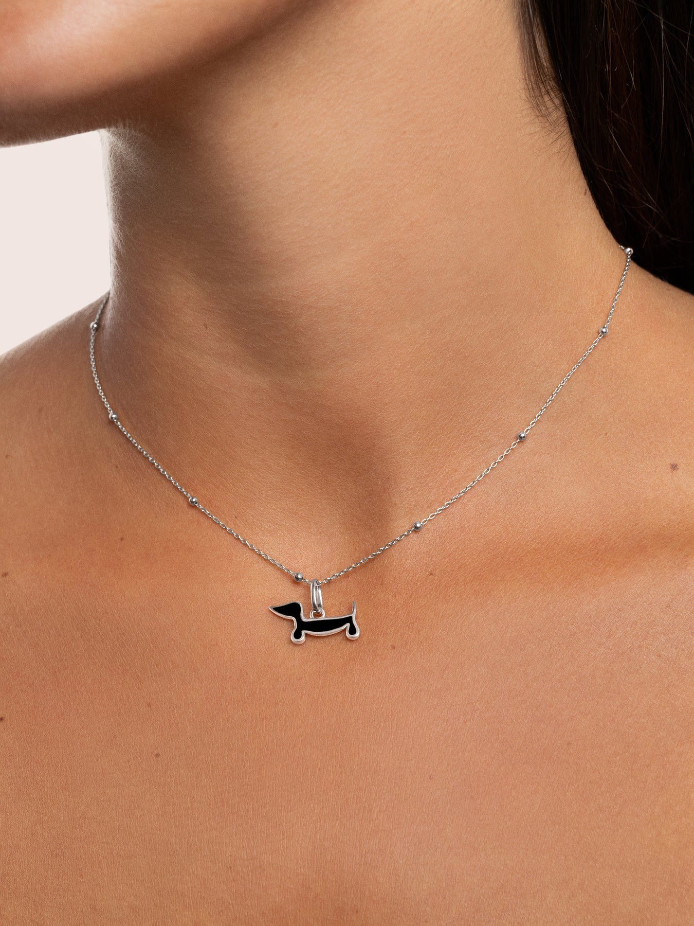 Il nostro Ciondolo Bassotto Placcato Argento con volto smaltato nero reversibile è l’accessorio perfetto da aggiungere alla tua catena d’argento preferita. ✨