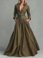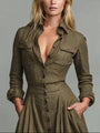 Questo abito maxi in stile vintage è realizzato con una pregiata miscela di poliestere e cotone. Il design a camicia, unito alla lunghezza fino a terra, dona un’eleganza senza tempo e una silhouette raffinata ma confortevole.