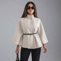 Questa giacca unisce raffinatezza e modernità in un design impeccabile. La struttura fluida e la vestibilità aderente valorizzano la figura con un perfetto equilibrio tra stile e sicurezza di sé.