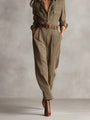 Alessia - Tuta utility in tweed marrone a fantasia raffinata