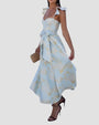 Bruna è l’abito che unisce con semplicità fascino e stile. Con maniche a farfalla, una cintura che valorizza la vita e una stampa raffinata, è perfetto per quei momenti in cui vuoi brillare – da una passeggiata estiva a un pranzo all’aperto.