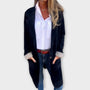 Questo cappotto lungo in peluche aggiunge calore e stile senza sforzo a qualsiasi outfit quotidiano. La sua vestibilità rilassata e la texture morbida lo rendono il pezzo perfetto da sovrapporre per look casual, da lavoro o nel fine settimana.