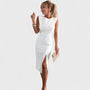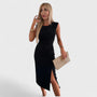 Look estivo elegante: la combinazione tra il taglio aderente e lo spacco sulla gamba conferisce un effetto femminile e deciso allo stesso tempo.