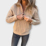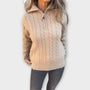 Un maglione a maglia a trecce che unisce un design senza tempo con una praticità moderna. Il colletto a mezza zip aggiunge versatilità, permettendoti di indossarlo aperto per un look rilassato o chiuso per calore. Morbido e confortevole, è perfetto per essere indossato a strati durante l'autunno e l'inverno, mantenendo il tuo look senza sforzo chic.