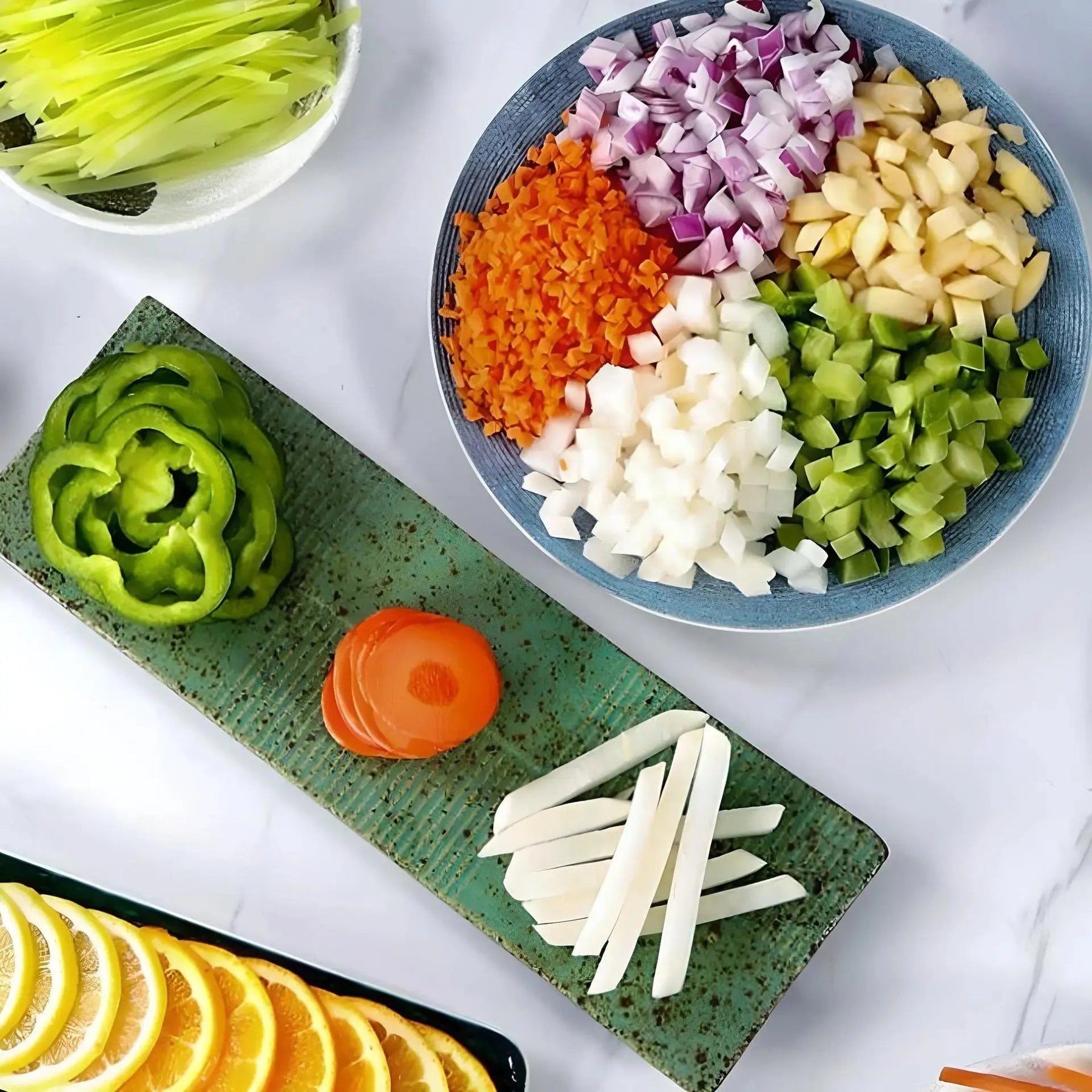 Con le impostazioni di spessore, puoi ottenere fette precise e uniformi per ogni piatto senza fatica. Affetta e taglia a cubetti frutta e verdura in pochi secondi, rendendo la preparazione dei pasti più veloce e semplice.