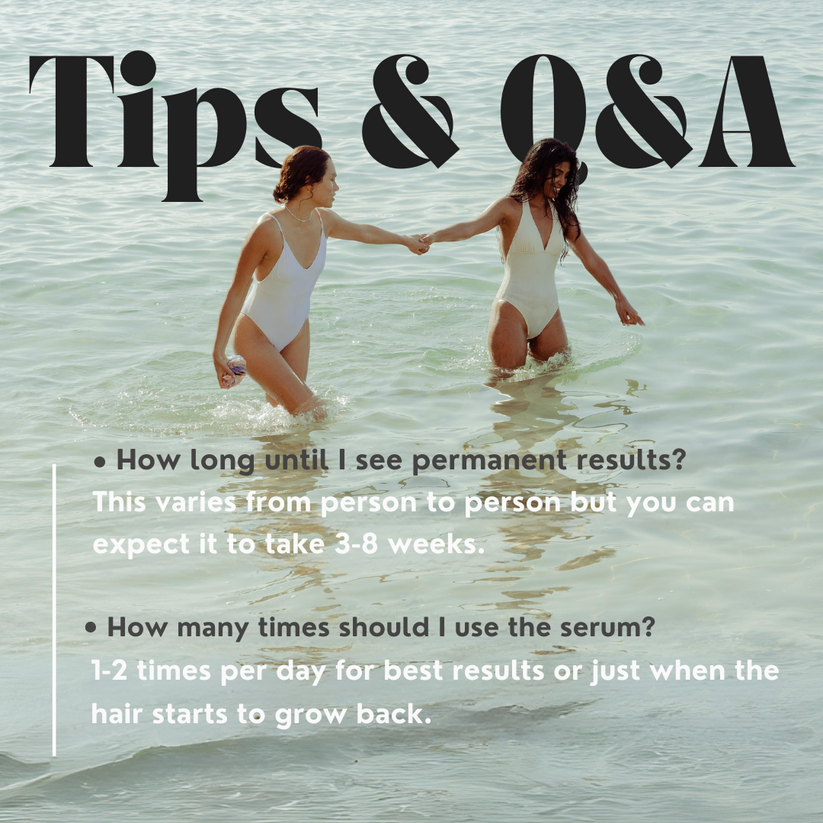 Con l’uso regolare del siero Seraphine, potrai notare un diradamento progressivo dei peli, una crescita più lenta e una pelle liscia più a lungo. Niente più irritazioni – solo una piacevole sensazione di freschezza.