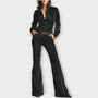Questo elegante set in velluto a due pezzi eleva il tuo look con un top aderente e pantaloni svasati drammatici che scolpiscono una silhouette lunga ed elegante. Perfetto per serate fuori o per un look quotidiano alla moda, offre comfort, sicurezza e un fascino moderno senza sforzo.