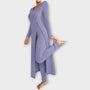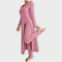 Questo set lounge in maglia a coste ultra-morbido è progettato per giornate accoglienti a casa, mantenendo un aspetto curato e senza sforzo. La tunica rilassata con fessure laterali e i pantaloni aderenti coordinati offrono comfort, elasticità e movimento lusinghiero.