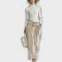 Questo raffinato set a due pezzi abbina un top in maglia a collo alto fitted con pantaloni lounge in velour rilassati per un look invernale chic ma senza sforzo. Le texture morbide e i dettagli a contrasto sottili lo rendono perfetto per un abbigliamento quotidiano elevato o uno stile informale e accogliente.
