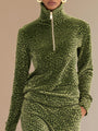 Design: top a collo alto con zip frontale, maniche lunghe, stampa leopardata, set coordinato due pezzi
