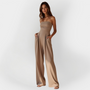 Questa tuta intera lunga nera senza spalline è l'epitome dell'eleganza e della femminilità. Una scelta senza tempo per qualsiasi apparizione serale o occasione formale.