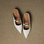 Le mules in pelle naturale Wilda presentano un look elegante arricchito da fibbie lucide, punta affusolata e cinturino in stile Mary Jane classico.